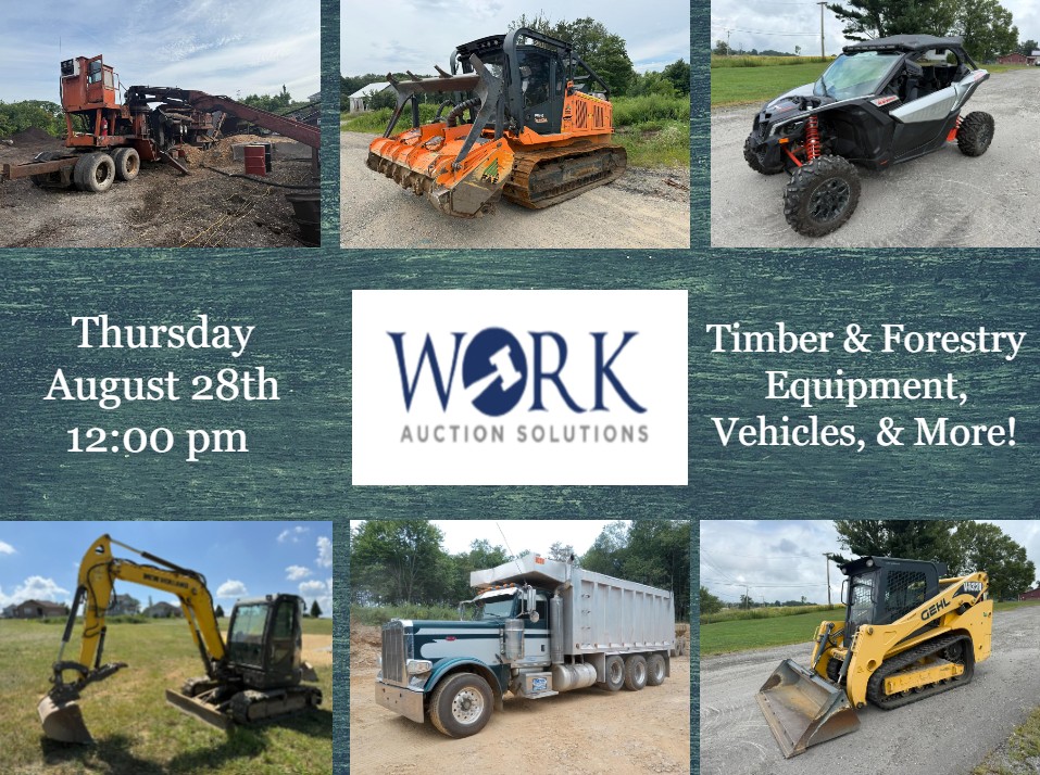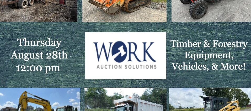 August Equipment Auction! (August 28th, 2025) June 30, 2025/0 Comments/in Past Auctions /by Lindsey Work BIDDING BEGINS CLOSING Thursday, August 28th at 12:00 PM CLICK HERE TO VIEW ITEMS & BID! 724-434-9653BILLY WORK AU006008 https://www.workauctions.com/wp-content/uploads/2025/06/8-28logo.jpg 714 957 Lindsey Work https://workauctions1.wpengine.com/wp-content/uploads/2018/02/Work-Auction-Logo-FINAL-300x134.jpg Lindsey Work2025-06-30 12:24:482025-09-02 09:46:26August Equipment Auction! (August 28th, 2025)